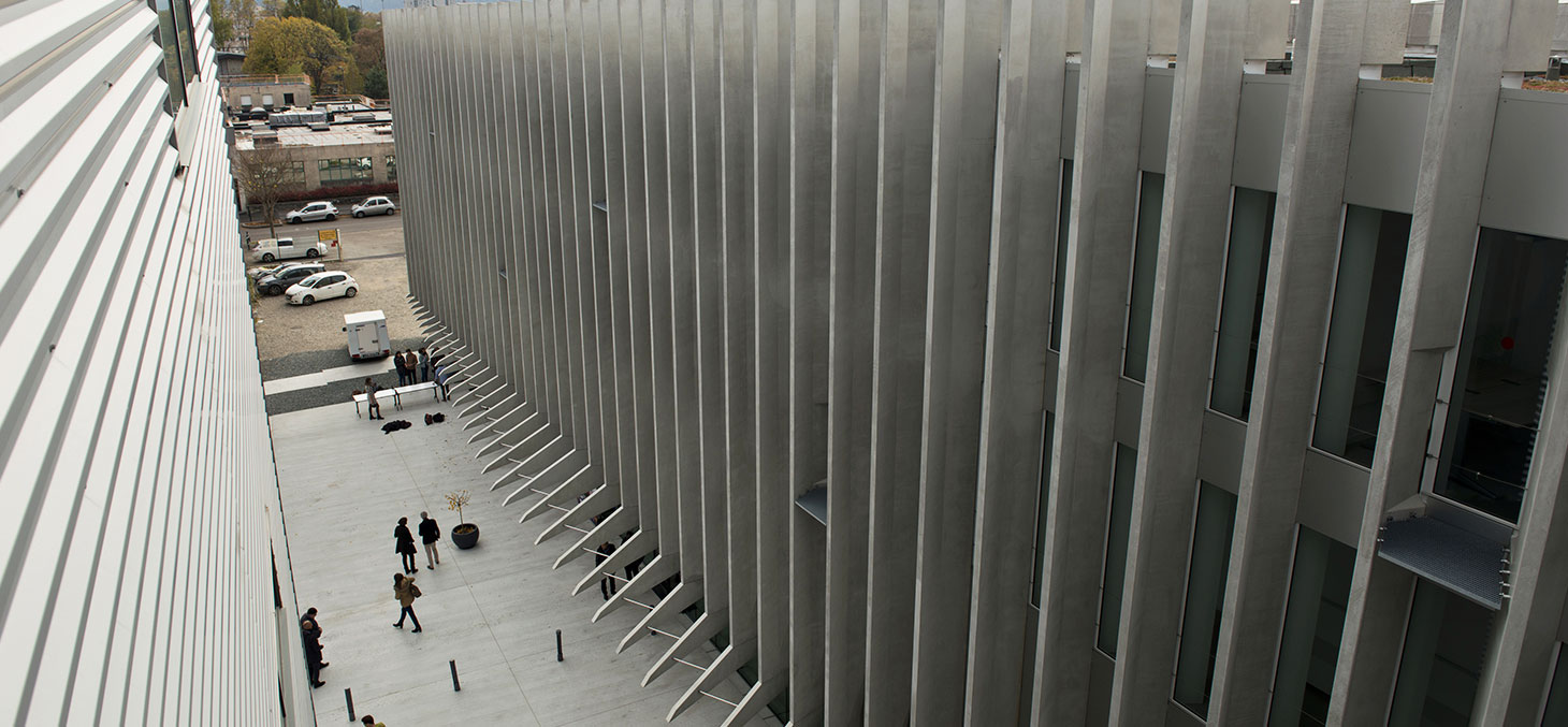 "Je suis très heureuse d’ouvrir aujourd’hui les allocutions officielles d’inauguration du nouveau bâtiment de la Cité des Territoires. Ce très bel édifice en béton brut que nous venons de visiter, matérialise parfaitement tant par sa forme, son implantation et ses fonctions, un trait d’union entre l’Institut de géographie alpine et l’Institut d’urbanisme. Trait d’union que nous avons construit tous ensemble depuis plusieurs années pour que les communautés de géographes et d’urbanistes se rejoignent." C’est par ces quelques mots que la Présidente de l’Université Grenoble Alpes Lise Dumasy, a ouvert la cérémonie d’inauguration en présence de plus de 200 invités et en particulier des financeurs, des bâtisseurs et des usagers du nouveau bâtiment réunis. Après avoir salué les qualités architecturales du bâtiment signé Guyard Bregman, la présidente est revenue sur les fonctions des différents espaces et leur vocation pour faire se rencontrer et travailler ensemble les géographes et les urbanistes.