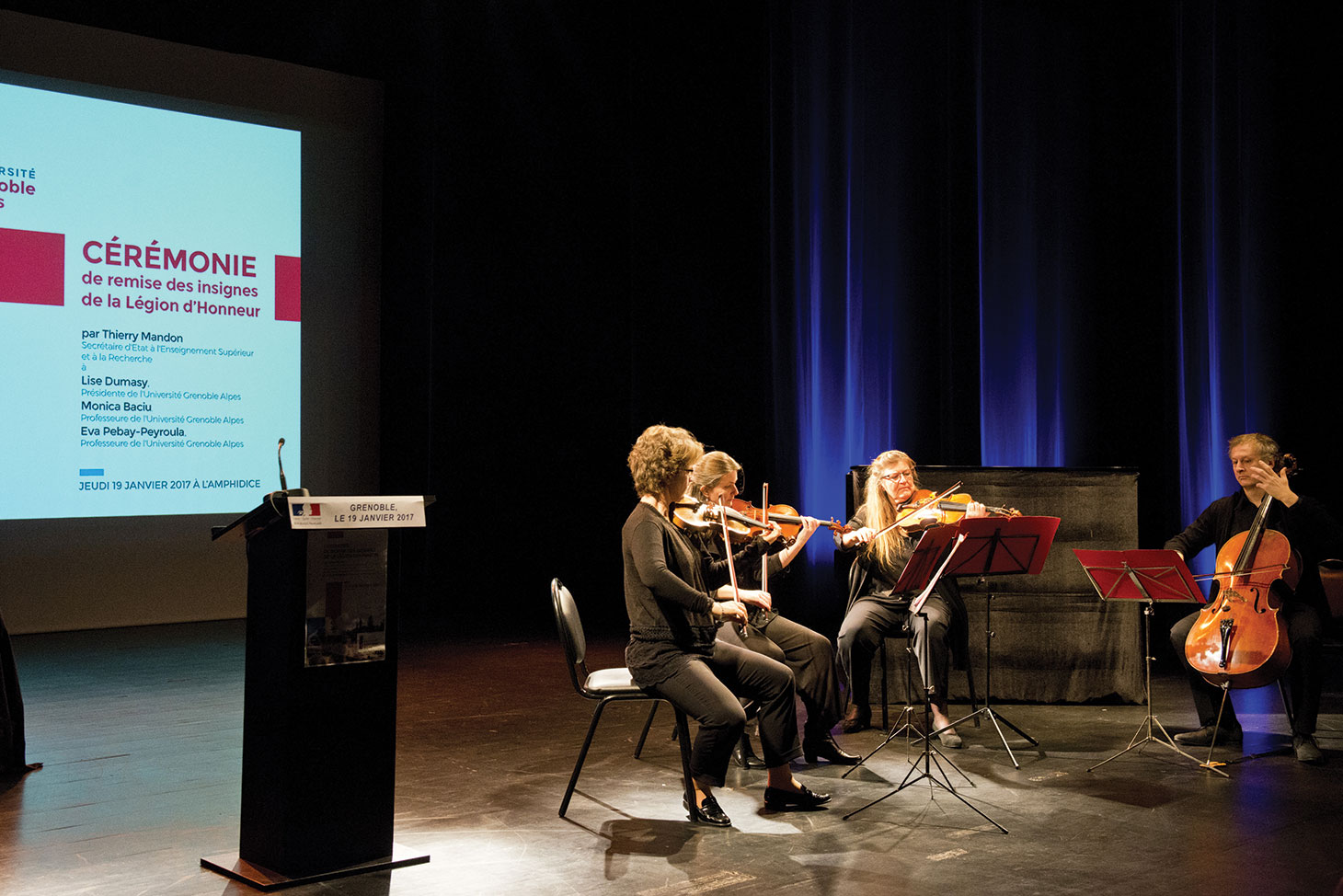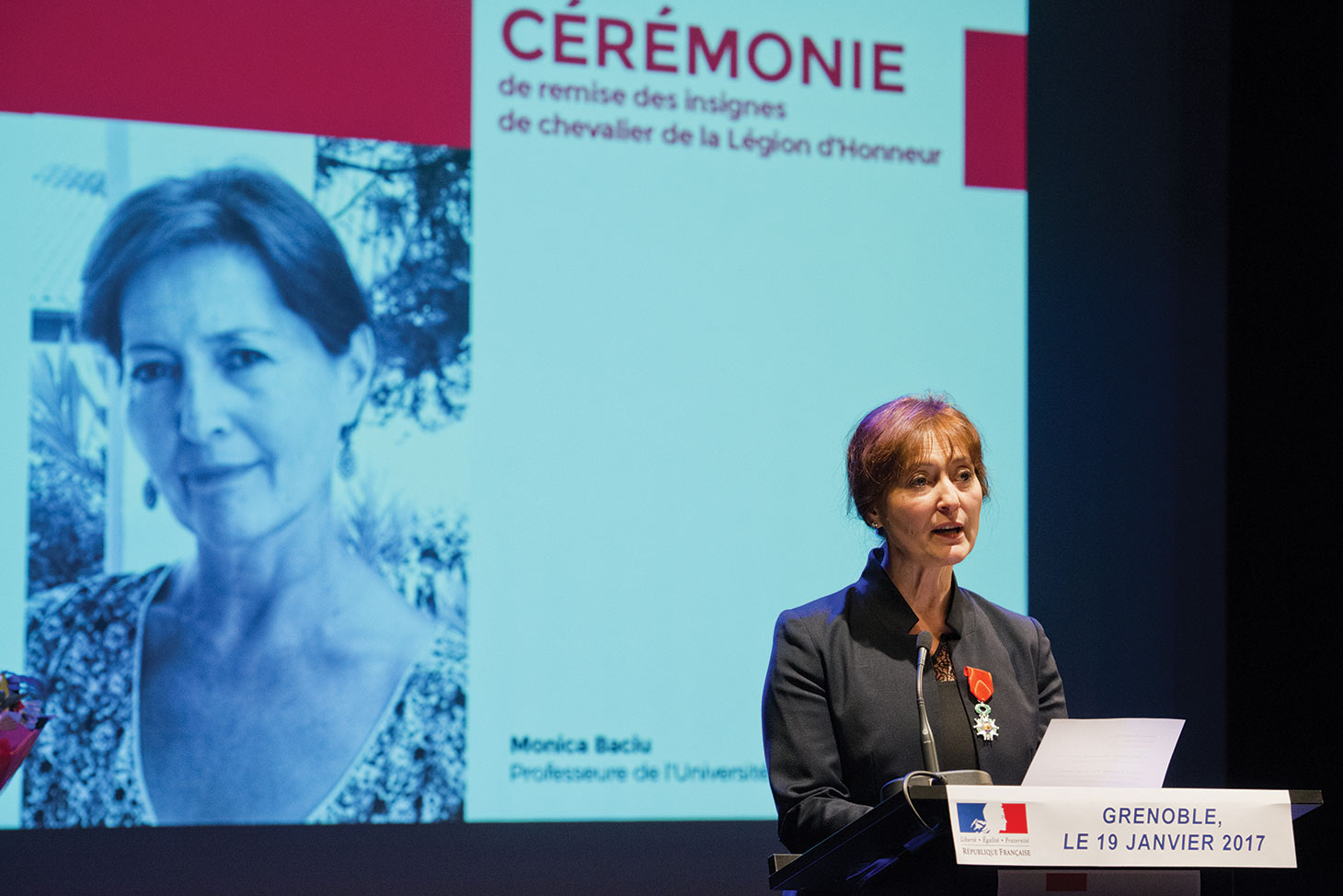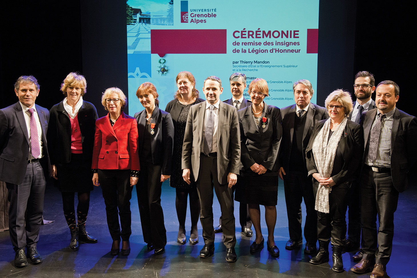 Lise Dumasy, Présidente de l'Université Grenoble Alpes, et deux autres éminentes professeures de l'université, Monica Baciu et Eva Pebay-Peyroula, ont reçu le 19 janvier 2017 dernier, des mains de Thierry Mandon, Secrétaire d'état à l'enseignement supérieur et à la recherche, les insignes de la Légion d'honneur.