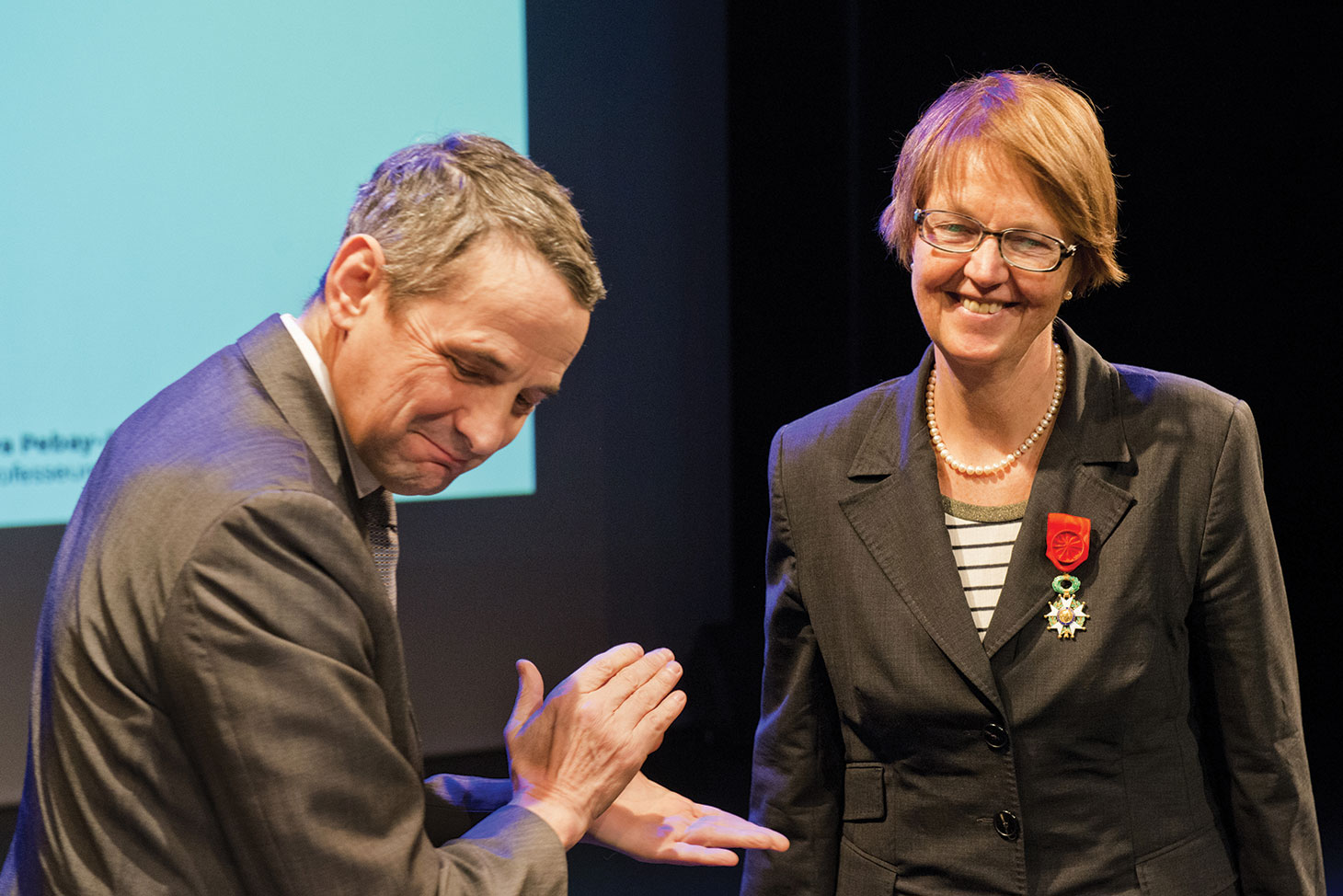 Eva Pebay-Peyroula reçoit les insignes d'Officier de la Légion d'Honneur