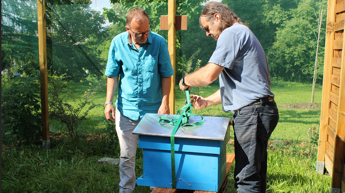 Dans moins d’une heure, les deux nouvelles reines du Jardin Dominique Villars, leurs ouvrières et leurs faux-bourdons seront dans leur rucher et pourront partir à la découverte de plus de 250 espèces végétales. Cet envol marque aussi celui d’un nouveau projet pour le jardin, la biodiversité et le grand public.