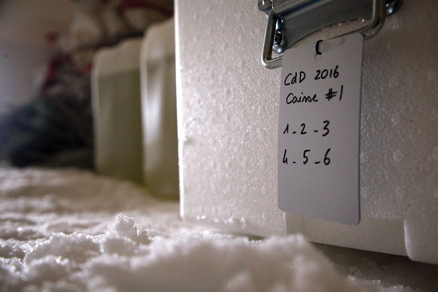 La caisse contenant une partie des segments de la première carotte prélevée.