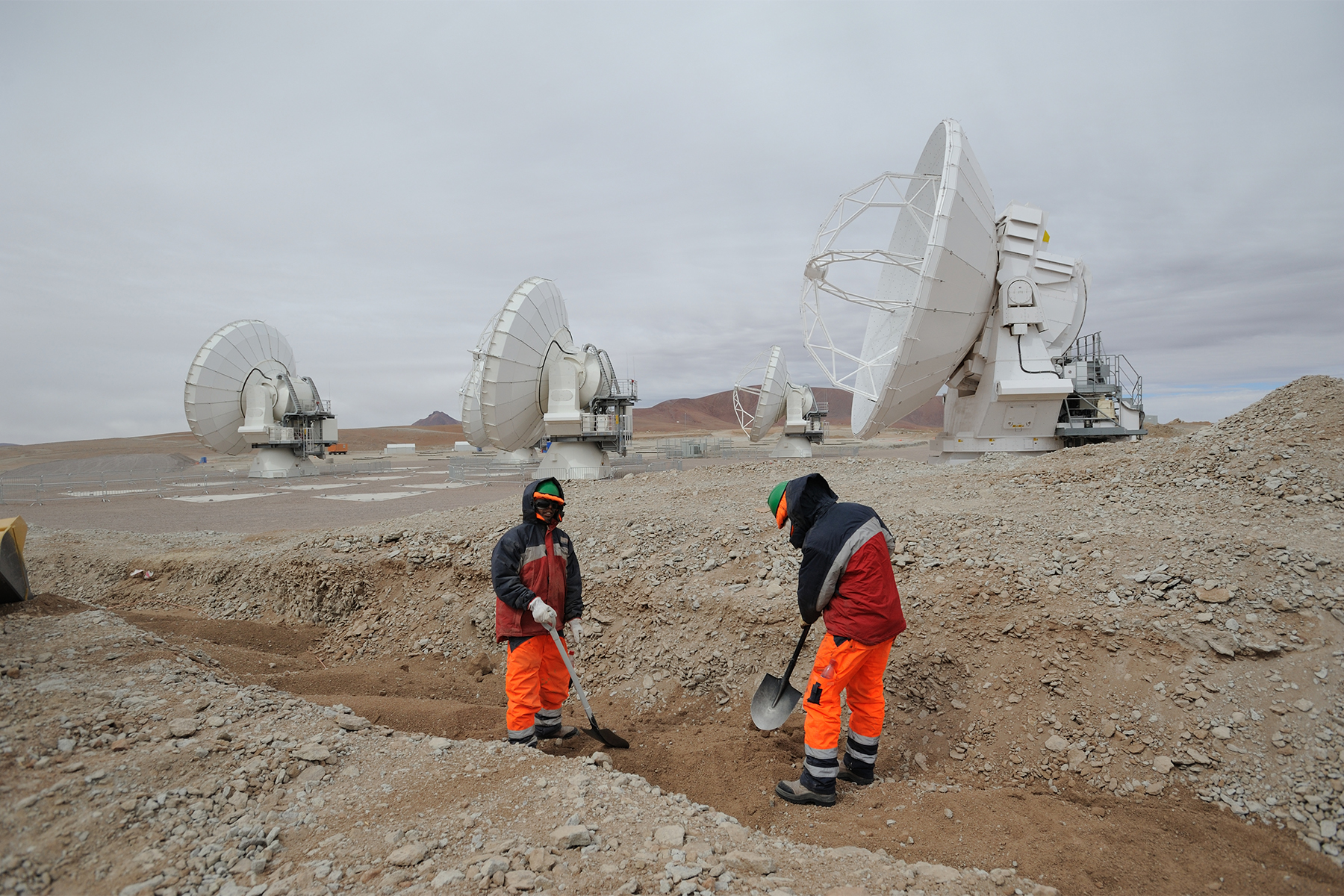 Alma est un interféromètre géant observant dans le domaine du millimétrique (les ondes radios de plus courte longueur d’onde, milimétrique ou submilimétrique), les données provenant de chaque antenne sont recombinées ensemble pour obtenir des images d’une qualité exceptionnelle. La vapeur d’eau dans l’atmosphère absorbe une partie de ces ondes ce qui nécessite d’aller chercher des sites encore plus secs. Cet observatoire est pour cela installé à 5000 m d’altitude. À de telles altitudes l’organisme humain est mis à rude épreuve et tous les véhicules et bâtiments sont pressurisés. Cet observatoire unique au monde est réalisé en collaboration entre l’ESO et des organismes des États-Unis et du Japon. L’IPAG y mène de grands programmes d’observation permettant de sonder les zones de formation d’étoiles et de planètes.