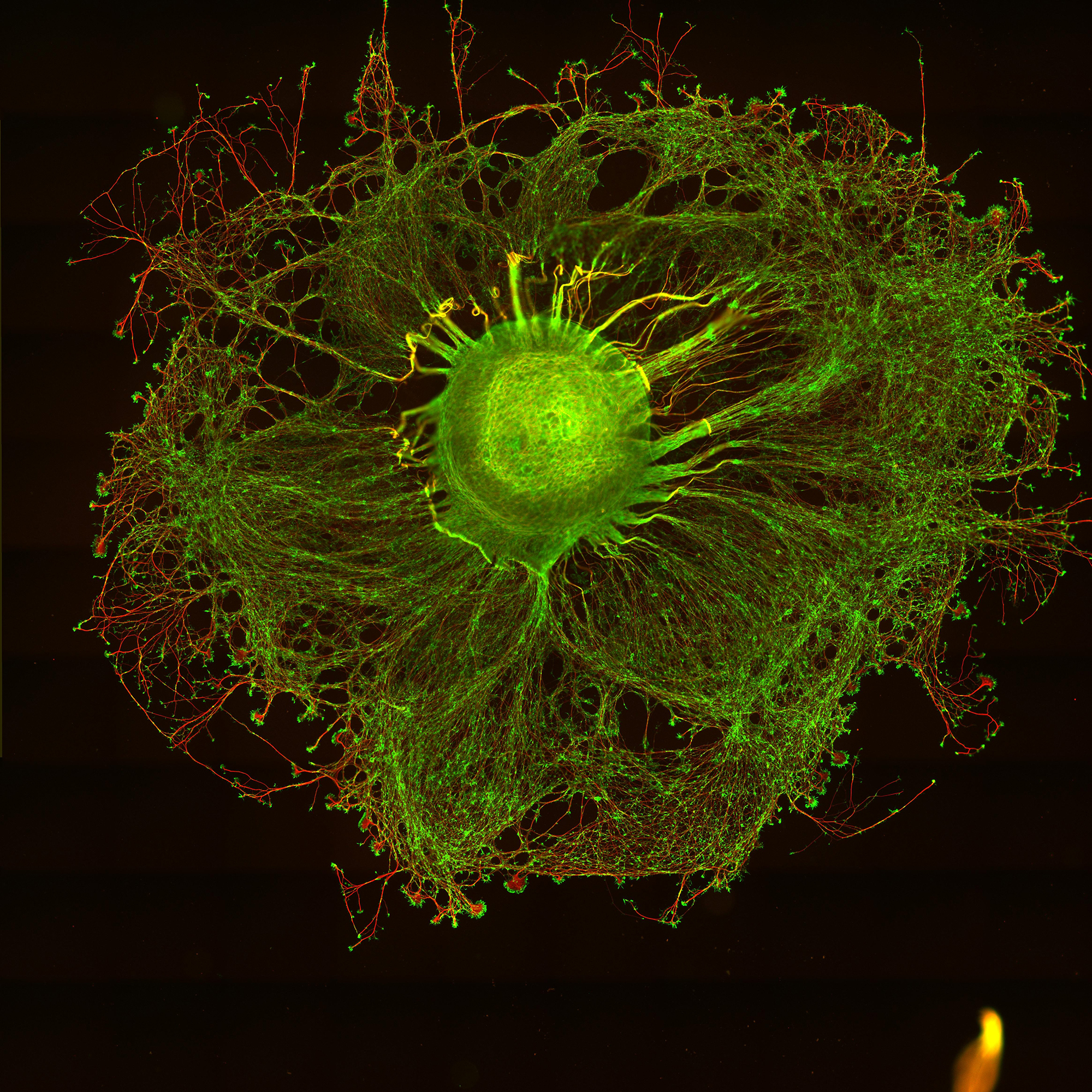 Mise au point dans les années 90, la microscopie de fluorescence a révolutionné l’imagerie. Les scientifiques sont dorénavant capables d’observer la forme et la structure des objets biologiques mais également de distinguer jusqu’aux molécules qui les composent. Un fabuleux voyage au centre du vivant, permis par une petite protéine issue de la méduse, et dont l’esthétique des photos n’enlève rien à la valeur scientifique des images.