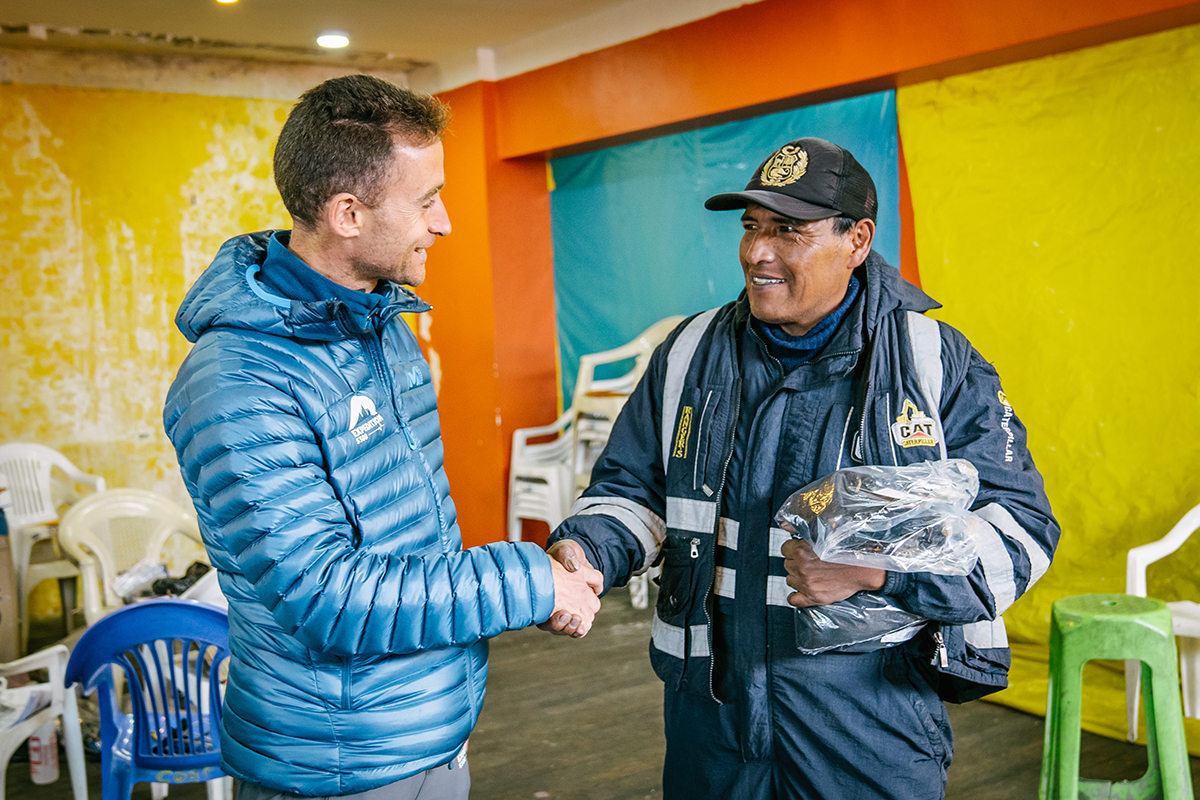 - 8 & 9. Samuel Vergès porteur du projet Expédition 5300 remerciant un des participants. Une étudiante péruvienne en médecine apporte son aide à l’équipe en récoltant des données via un questionnaire soumis aux