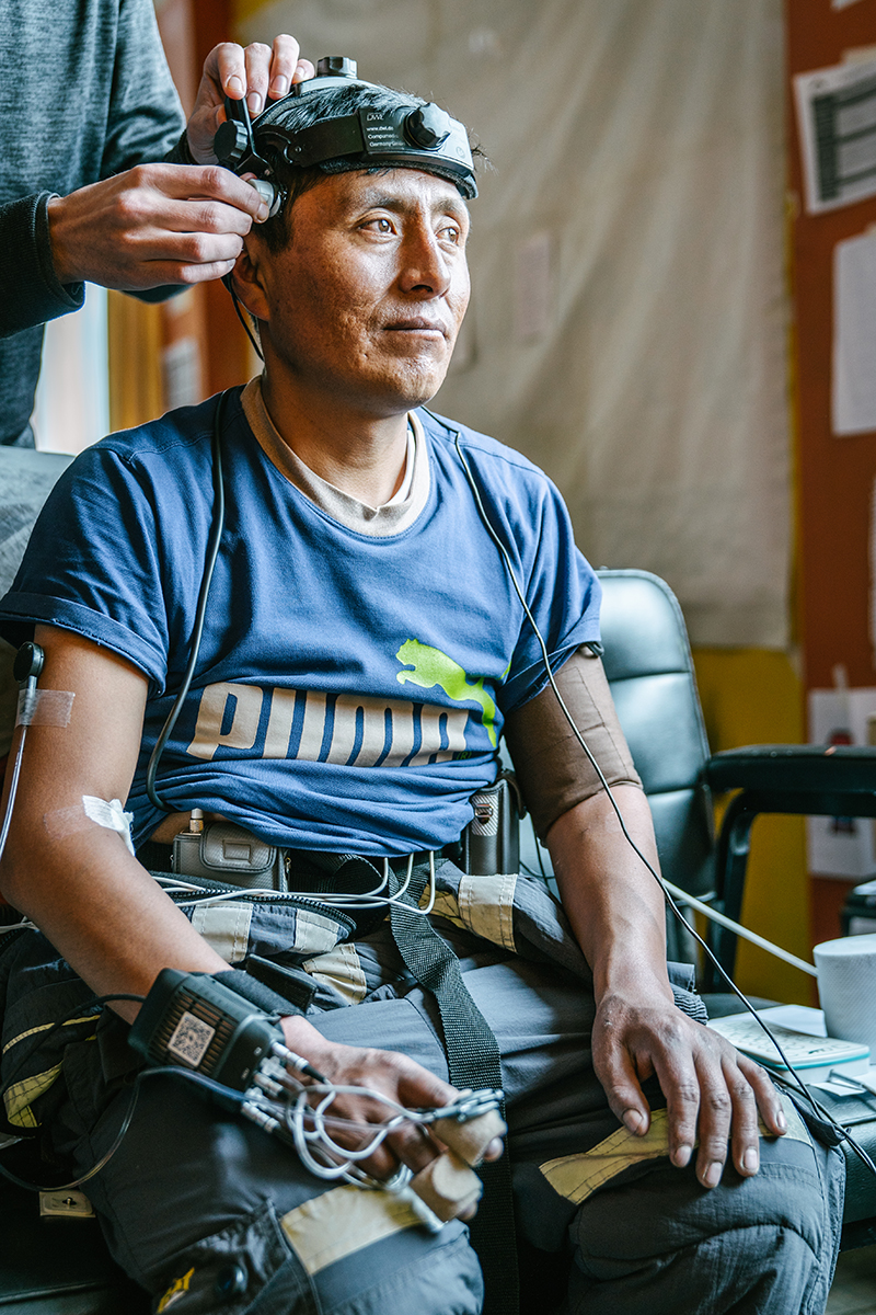 - 3 & 4. Emilio et Juan, deux mineurs volontaires, qui ont participé à un phénotypage biologique et physiologique complet nécessitant plusieurs heures de tests. © Tom Bouyer - Expedition 5300
