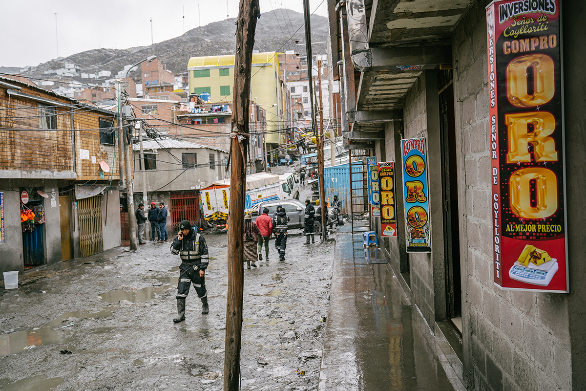- 14 & 15. À 5 300 m d’altitude, on croise des mineurs dans toutes les rues.Quasiment tous les habitants travaillent dans des mines d’or exploitées 24h sur 24. Ils ne perçoivent comme salaire que l’or qu’ils découvrent le dernier jour du mois et qu’ils purifient eux-mêmes chez eux avec du mercure. © Tom Bouyer - Expedition 5300