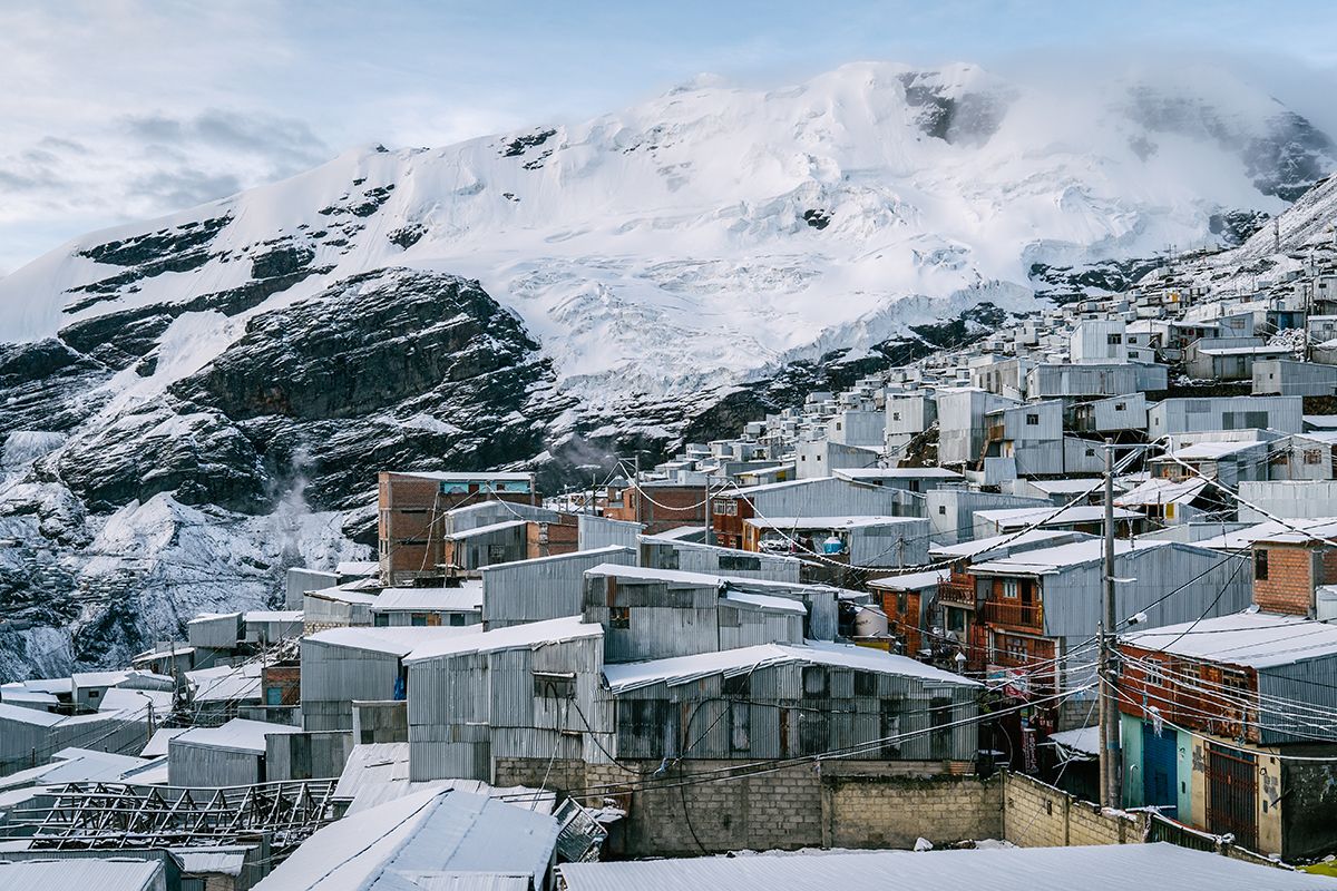 - 1 & 2. La Rinconada, la ville la plus haute du monde est dominée par un glacier culminant à plus de 6 000 m d’altitude. © Tom Bouyer - Expedition 5300